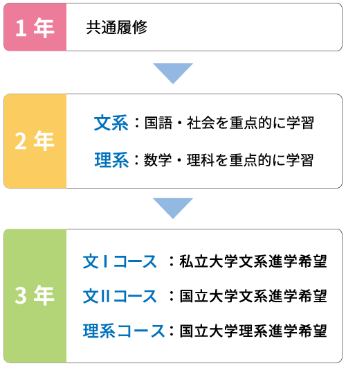 文系・理系に分かれ、個性を伸ばし進路にあった学習を進めます。