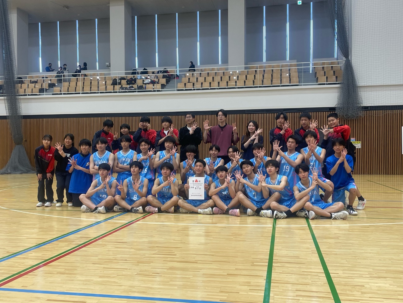 男子バスケットボール部は県大会出場を目標に日々活動しています。部員間でコミュニケーションを取り、自分たちで練習メニューを考えることで主体的に取り組んでいます。