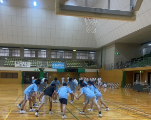 R7年度の新川高等学校女子バスケットボール部は、1年生9名(マネ1名)2年生4名(マネ1名)3年生4名(マネ2名)で活動しています。平日は木曜日は基本オフ土日は、基本週1日(練習試合や大会前、大会前は連日になることもあります)で活動しています。短い練習時間の中で毎日成長するために、集合、移動は素早くを意識しています。そして、どの練習でも声を出し続けること(仲間を鼓舞したり、気をつけることを注意しあったり…)をチーム全員が一番重要視しています。どんな状況でもコミュニケーションがとれるチーム目指します。