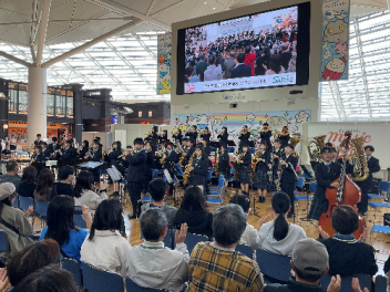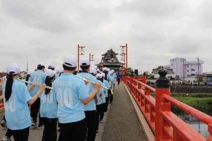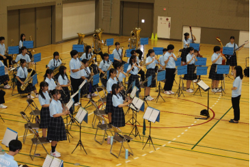 日々練習に励んでいます。体育祭や文化祭、クリスマスコンサートなど学校行事での発表に加え、地域のイベントでも演奏を披露しています。今年度は3つの老人ホームでの演奏、清洲城信長祭りでのパレード演奏、セントレア空港で演奏する機会をいただきました。3月には1年の集大成である定期演奏会を実施しています。個人の技術向上はもちろん、多くの人に愛されるブラスバンド部を目標としています。