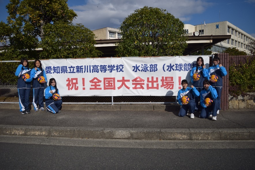 水泳部は競泳部門と水球部門に分かれて活動しています。以前に比べると部員の人数が減少していますが、「やる気と元気は日本一!」を合言葉に日々の練習に励んでいます。競泳部門は県大会出場を目標に活動しています。水球部門は東海大会出場を目標とし、特に女子は愛知県代表として全国大会で活躍しています。